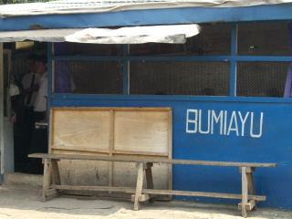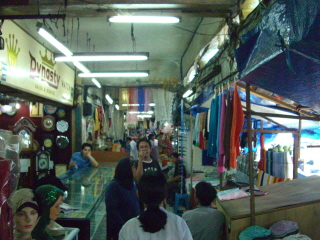 After the district meeting we tried to go eat at a Chinese place but we were too late. It is a small restaurant and fills up quickly. So instead we went shopping – or maybe it would be better to say Mary went shopping and Sam and I went along. She bought some material for a blouse and then we walked through a real traditional Indonesian market to find some yard for her to crotchet. Think of large space crammed with small stalls and each stall having home made shelves mixed with display cases. Now think of aisles that were so small two people could sometimes not pass. Add Indonesian heat and humidity and lots of people – now you have the mall.