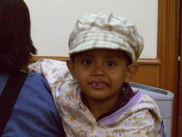 Sam got me lunch off the street. It was good but Mary’s tuna sandwich also smelled good. After lunch a sister came in and asked us to help design a price list/order form for her small business. Mary did all the work and I played with her young son. She could get a job sewing but she can not take her 4 year old son. She has no family in Jakarta and so there is no one to take care of the child. I had a great time working on some e-mail and playing with him. All children are the same – they like to play peek-a-bo.