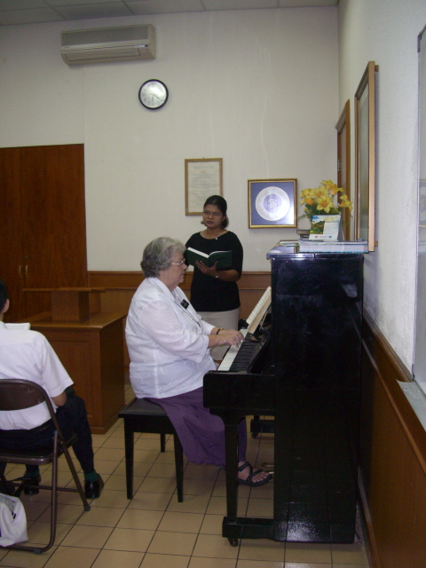 While Mary taught her lesson, I talked to president Marchant and he invited us to have dinner with them and the Wassons a Family History couple from Bankok. Because of the traffic, the Wassons were an hour late getting back to the mission home so we got to sit around and just talk to the Marchants. After the Wassons got there – they are staying in the mission home – we had a lovely dinner with lots of conversation. When it was over, we excused ourselves and caught a taxi back to the apartment. We kind of broke a rule and took a non-BlueBird cab home. We got a little worried when he took a way we did not know but Mary soon figured out we were going the right way. It turned out his way seemed faster than the way Sam usually takes so I gave him a nice tip.