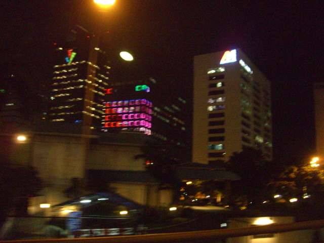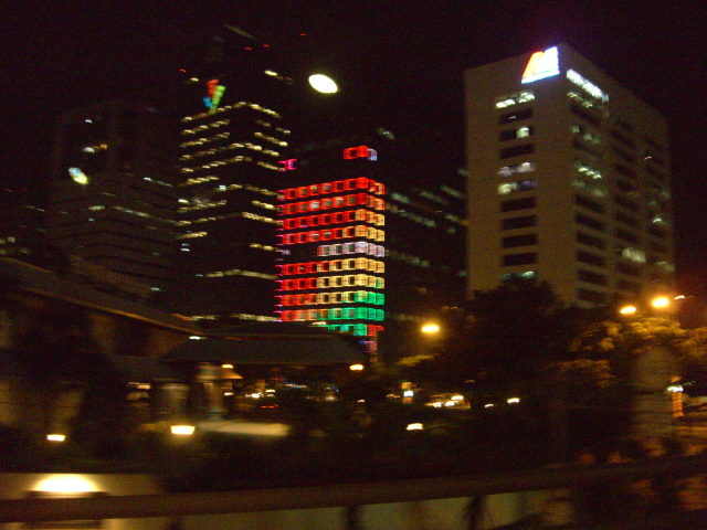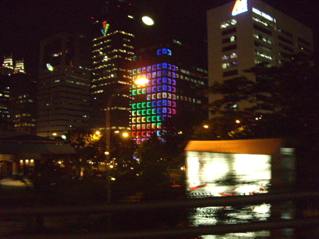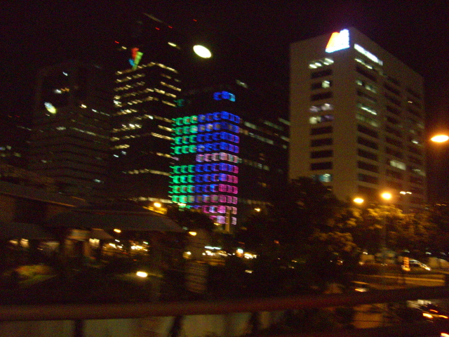 The trip home took two hours because the toll road was packed with people trying to get out of town for the three day weekend. I had enough sense to sleep through about half of it but Mary, Sam and Annie got to experience the whole thing. Speaking of those two it seems they will get married sometime in late April and Sam will go to school here in Jakarta. We are happy for them. Since the traffic was so slow, Mary was able to snap a series of pictures of a building that has neon lights around the windows that goes through an interesting color sequence. So even dark clouds sometimes have a small amount of silver lining. That sounds like a good theme for a talk or lesson on how we experience the world.