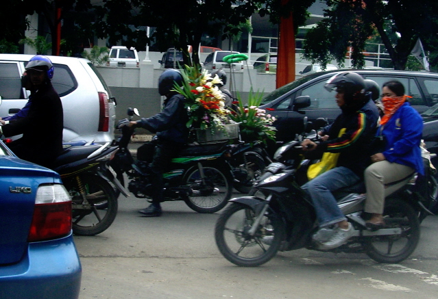 This is the first floral arrangement that we have seen on a motorcycle in quite some time. Maybe it is not practical during rainy season?