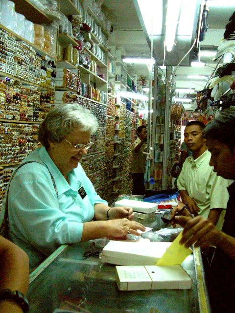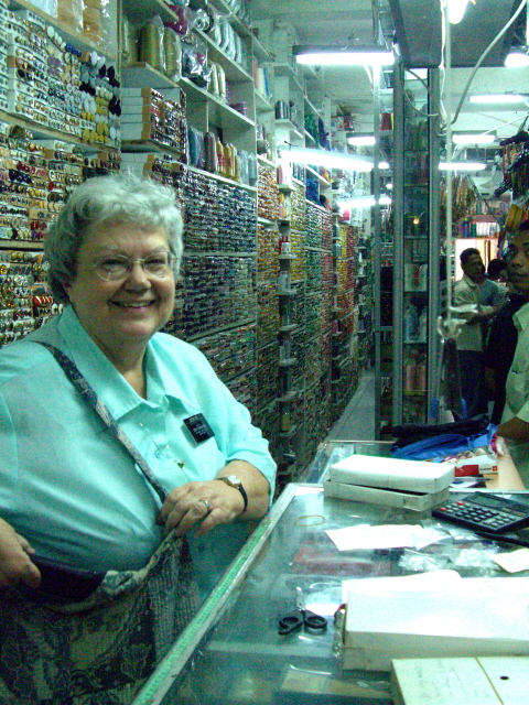 Mary and the button store – there are three aisle of buttons stretching for perhaps 40 feet each and everywhere there are shelves full of boxes of buttons. If you can not find the button you want here, it probably is not made. Mary restrained herself and only bought three styles or sizes.