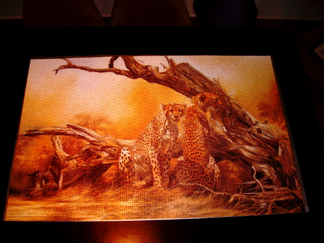 This really belongs with yesterday but I did not take it until this morning. This is the finished 1500 piece puzzle that we had to do mainly by turning the pieces over and using a pattern on the back to guide us. I know it was cheating but I doubt if we would have every finished it any other way. I am going to get more puzzles from this company but I think I will stick to the 500 or 750 piece puzzles.