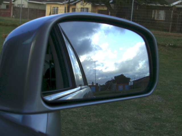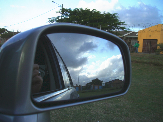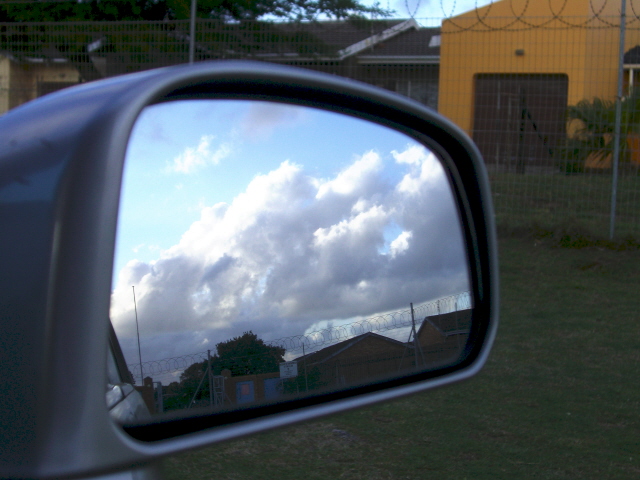 I also noticed that the view in the side mirror showed some interesting cloud patterns so I took a number of pictures. I think they turned out well. When Mary’s student was not there by 15 minutes after the scheduled time we headed back to our boarding.