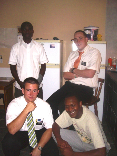 At a little after 9:00 we went over to the Richards Bay district boarding to say goodbye to Elders Petersen and Muthoka. We let them know we would miss them and wished them well in their new areas. Elder Petersen will once again be in a white area – he is becoming a specialist in white areas. I told Elder Muthoka that if he did not get his drivers license he would find himself walking the rest of his mission. We left them some Magnum bars to snack on while they packed. They head for Durban and their new areas tomorrow at 7:00 a.m. so I am sure they will be up most of the night.