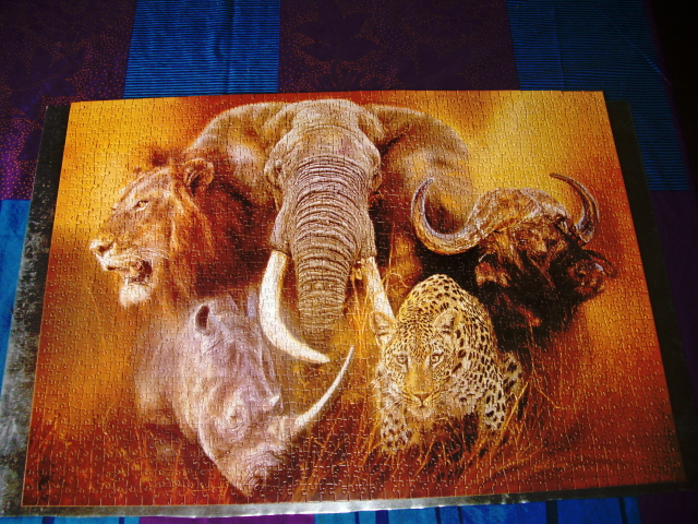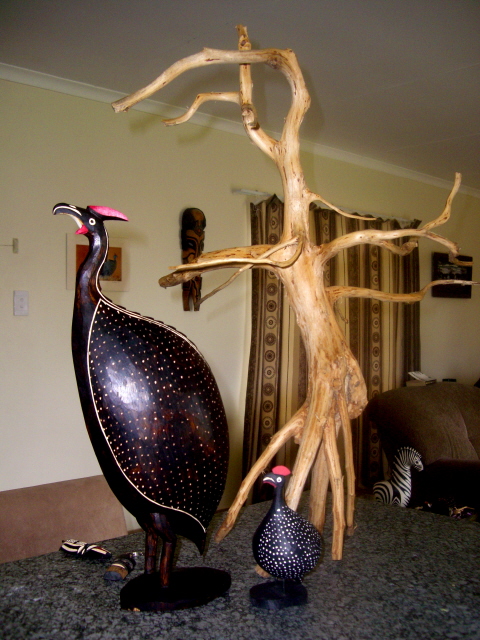 Our major gift purchases from our trip to St. Lucia. I continue to buy guinea fowls – they seem to have replaced the raccoon as my favorite animal. I do not think they have raccoons here. We finished another 1500 piece puzzle of the big five – this one we may break down and bring home.