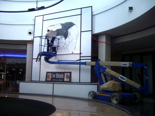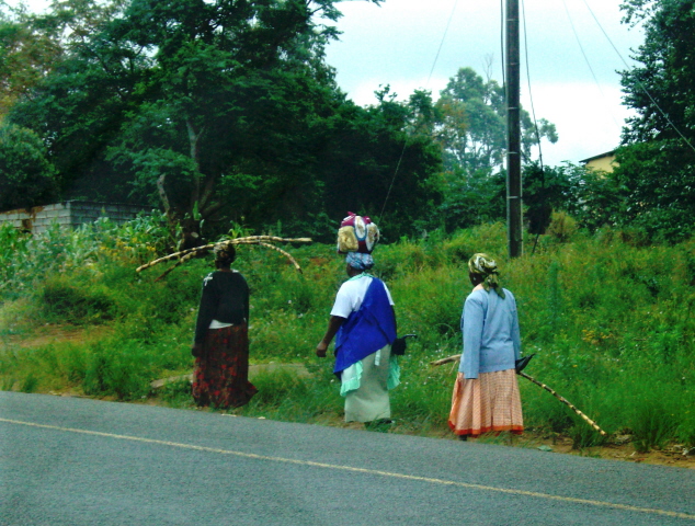 Joe Marais is a wildlife painter who works in the Richards Bay mall. He is doing a very large mural to be auctioned off with the proceeds going to charity. We see women carrying loads every day – we caught these ladies as they were walking along the road to Esikhawini.