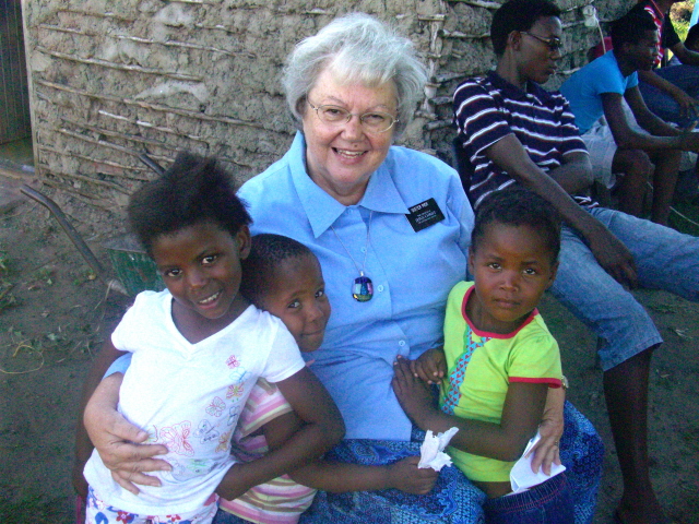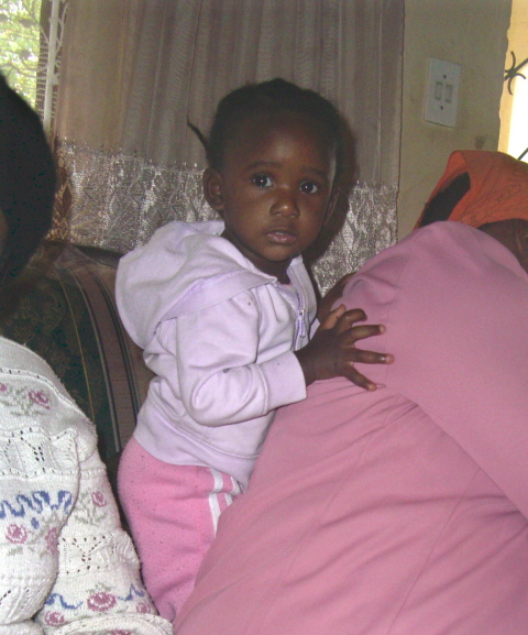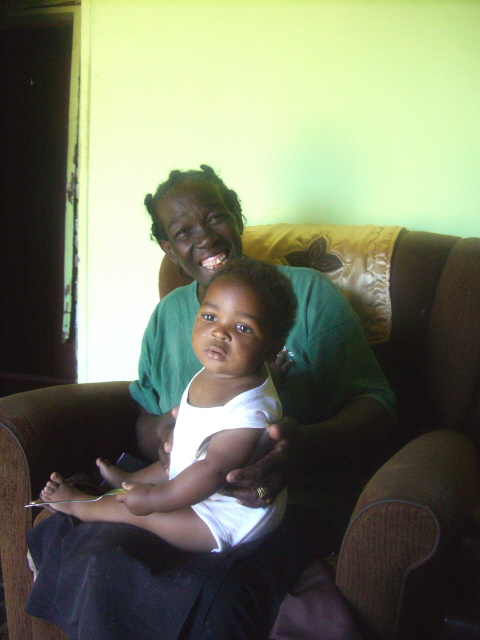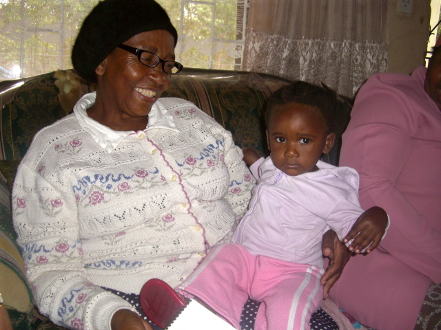 Gogos -grandmothers and great-grandmothers – seem to always have children on their laps. This great-grandchild of sister Nzama never seems to smile – my goal is to get a picture of her smiling before we go home. Mama Zulu from Enseleni with her grandson.