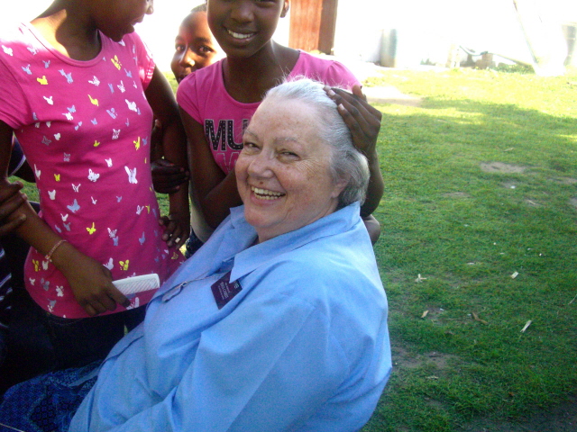 Mary sat in a chair in the shade and gathered up children, talked to Bungumusa and elder Wengert – among others – and had her hair styled by Ayanda and Zinhle.