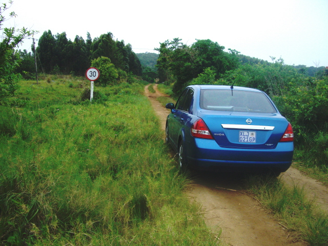 The view out the Nzama’s back door – I thought it catches a lot of what Port Durnford is about. The yellow daisies and the Esikhawini chapel. This taxi travels around the area where we have our boarding. Therefore a number of times we have found ourselves behind it and I can tell you it is well named.