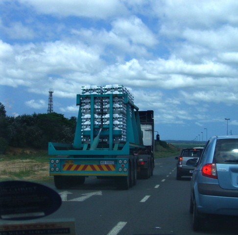 We drive by an aluminum plant almost every day. We often see truck lots of ingots – as seen here – and sometimes we see trucks that is hauling hot aluminum. We are not sure where the trucks are going but they head towards the harbor. We had to laugh when we saw this speed limit sign on a Port Durnford sand road in the middle of no-where. I finally got a picture of my plain looking, yellow beak bird in flight. The great looking white under-wing does not show when it is hopping around the Esikhawini lawn.