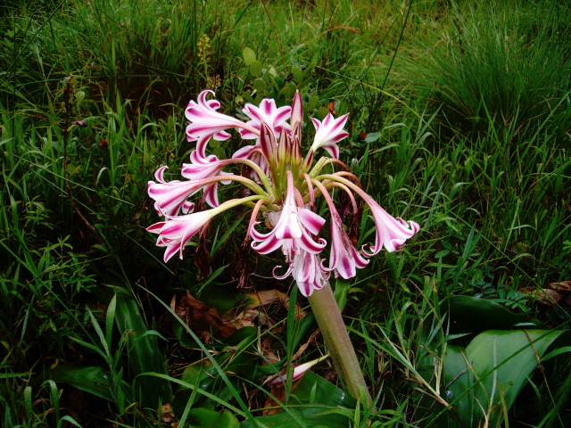 As we were leaving Zinhle’s homestead on a little used pair of ruts through a field, I noticed this single beautiful lily growing out in the middle of all the grass. I walked out through the wet grass to take a close up. As we were driving away we discussed how that bulb got out in the field. There were no other ones around and it certainly was not planted there on purpose. However it got there, it was a treat for us to see.