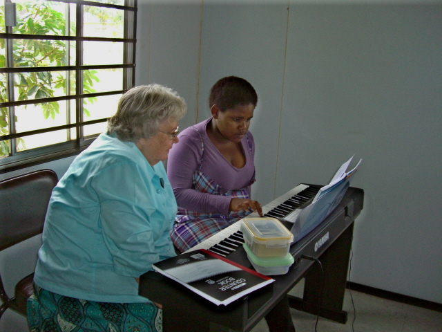While Mary was teaching piano to Zama and other, Sister Ndlovu and her son showed up to clean the buildings for Sunday services. We are going to start holding English classes at her house on Wednesdays.