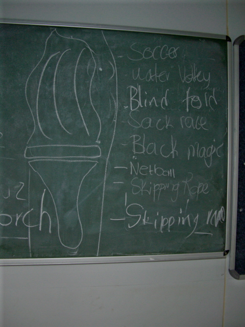 As I was locking up the chapel after Mary’s lessons I noticed this on the board. It seems the Esikhawini youth were discussing the Youth Convention that is coming up in just 2 weeks. The Torch is the symbol and I think the list on the right must be the activities they are planning to hold.