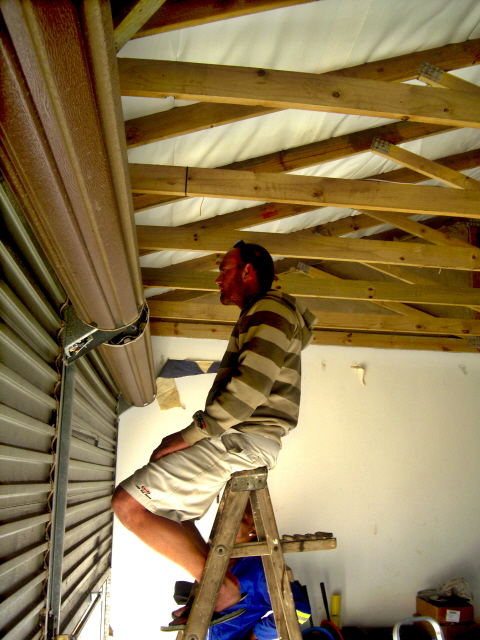 Martin our garage door man trying to figure out what the heck is wrong with the opener. He has been here so much we are thinking of adopting him. Since the first time we saw one of these trucks we wondered what kind of mind would choose RATS for the name of their company. But since they are everywhere I guess it has worked. Morning out our back sliding door is always different. The dark clouds let little light through this morning.