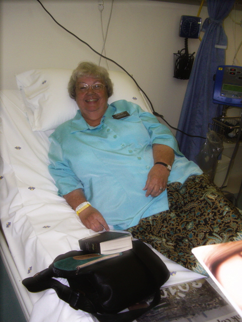 Everything went quickly. She only had to wait about 30-40 minutes before they wheeled her in to the operating room and about an hour to 90 minutes after that she was being wheeled back to her room. She of course did not feel very good and she complained that just two hours before she felt great. I was encouraged that they did not take her to ICU but put her back in a regular room. If everything goes right she should be out in 5 to 6 days – the doctor wants to keep her on antibiotics for that long. I stayed until she was pretty much settled in.