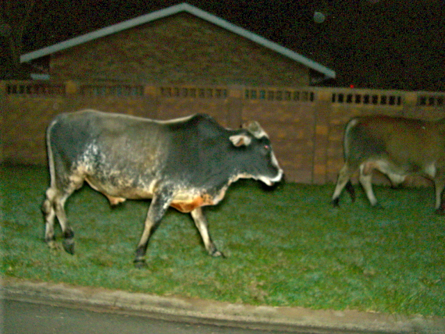 I had one of those South African moments when I backed out through our gate this evening to go to the hospital. I was not paying a lot of attention to what was going on around me because I was not going out into the street until the gate closed. All of a sudden I saw movement out the side of my eye and when I looked to see what it was, I was staring into the face of a very large bull. He and another 3 or 4 of his friends were grazing on the outside lawn in the dark. I guess that is why the grass out there has not needed cutting for a few weeks…it has become the local dining place for the neighborhood herd. I tried to take pictures but it too dark for anything really to turn out. I am going to be a little more careful when I back out in the future.