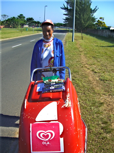Sunrises and sunsets are very beautiful at this time of the year because of all the particles in the air from the burning of cane fields and wood lots. Patriarch Jabba with the Nyawo family and YaYa Mathe – at least most of them look happy about getting their blessing. This nice lady and others push their ice cream carts through the streets day after day. I talked to her about how long has she been doing this and she told me 21 years. She started in Durban. I imagine she pushes her cart many Ks each day to make a living for her family. She sells the best ice cream we have found – Walls Magnum Bars only here they are just called Magnum Bars.