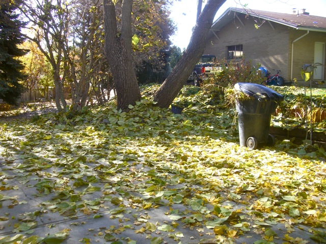 A couple of days before we were to leave for Florida, the catalpa tree near the house dropped 95% of it’s huge leaves in just a few hours. This happens each year after the first hard freeze of the winter. As soon as the morning sun comes over the mountains, it starts dropping the leaves and by the after noon it looks like this. I got most of them up and in the trash before we left.