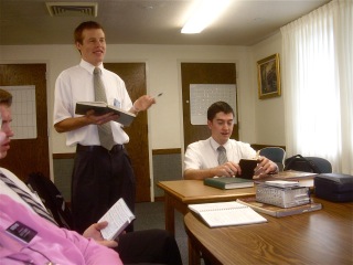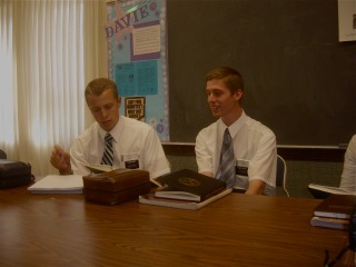As I have said before, going to District Meetings is one of the perks of being a senior missionary. To share the excitement and spirit of the dedicated young missionaries is a real boost for us. They sing, share, and learn. They make commitments to achieve goals that they set themselves and report on how they are doing. The middle picture shows the District leader Elder George on the right and his comp Elder Smoot. They lead by example and set goals that are a little stretch but achievable. The last pictures shows a very reluctant Elder Stholton leading the opening hymn while one of the ZL elder Beard sings out. I almost caught Elder Meredith but only got about 1/3 of his face.