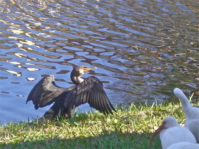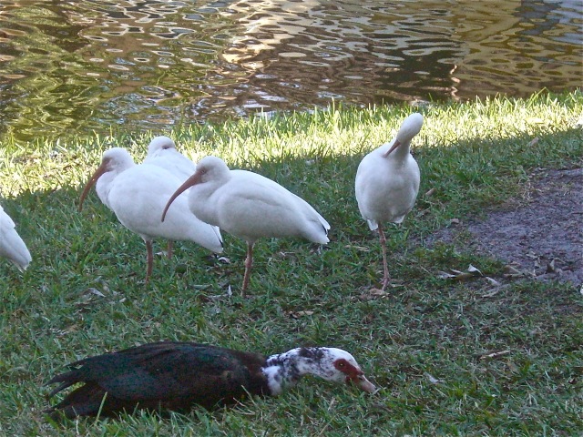 P-day and we spent most of the day at home while I continued to feel about 65%. Â I went to the store this morning and this mother and four ducklings were looking for breakfast. The ducklings are cute but they will grow up to be some rather ugly ducks. I do not know the name of the bigger gray bird. The egrets were quietly standing around on one leg…why do birds stand on one leg?