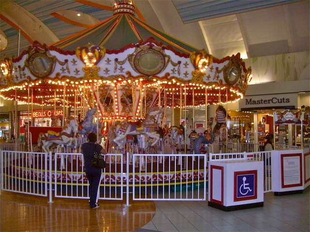 After lunch I went to Target to pick up a couple of things. On the way back I found myself in the way of a train that runs around the carousal and snapped a couple of pictures. While taking the one of carousal I found myself once again in its path.