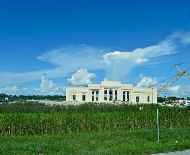 On Thursday before we went to Weston so Mary could give a piano lesson we took a detour past the Fort Lauderdale temple site. These pictures were taken from the North bound lanes of the 75 freeway – the only way you can take pictures of the West side of the temple without climbing over a very tall fence that tells you it is not legal to climb over. So Mary took a number of shots and these are the best.
