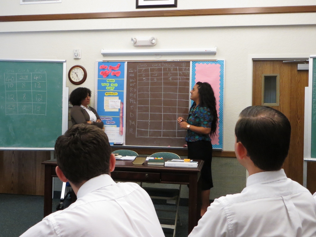 Elders Castillo and Maki, Sisters Escorbores and Tuai give their report. We have so many missionaries coming in that we had to move another bookcase in to hold all their New Missionary Binders. Hopefully someday there will be enough coming that both will be filled.