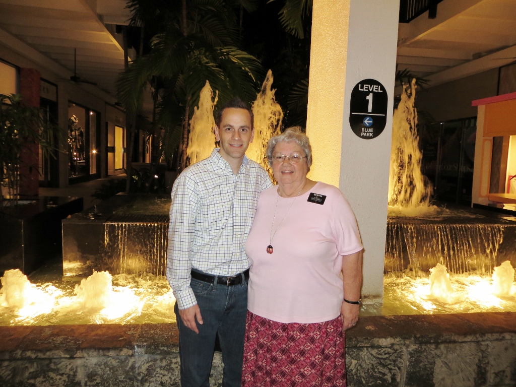 During the afternoon we got texts from Jim – who was in Miami for a business meeting – telling us when and where we could get together for a couple of hours. It turned out that we left our apartment just after 5:00 for what should have been a 40-45 minute drive to his hotel. Everything seemed to be going well until we got off the freeway and we found ourselves in terrible traffic that seemed to stop every block for a light. Then we could not follow the Goggle Map because they do not seem to mark cross streets very well in Miami. Of course it did not help that somehow the map Mary was trying to follow was to the wrong location. By hooking up the GPS and calling Jim we finally got to his hotel only about 40 minutes later than we should have.