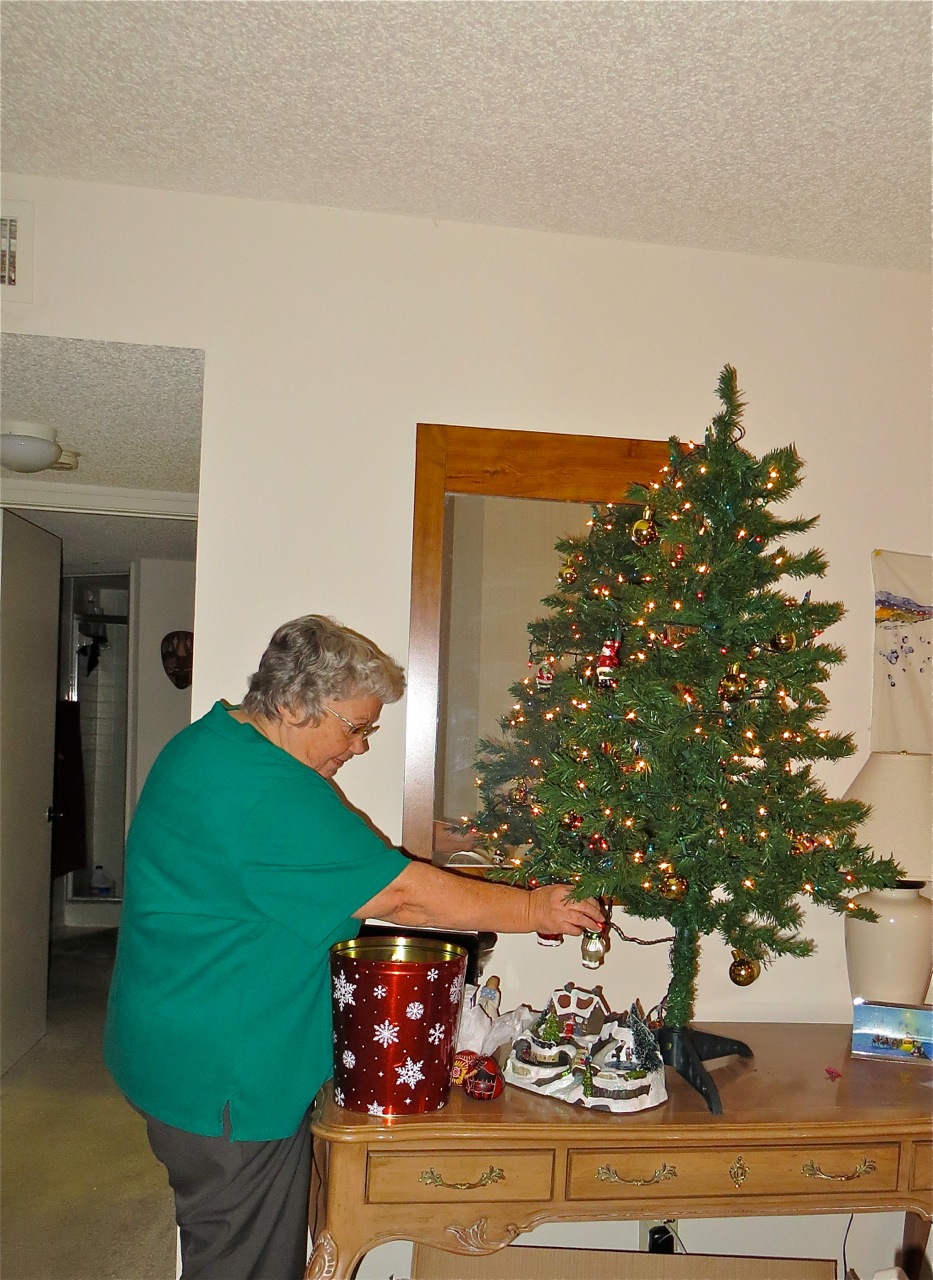 We have been blessed to celebrate Christmases in California, Utah, Indonesia, South Africa and now Florida. So today we went out looking for a tree where Mary could hang her ever growing collection of Christmas ornaments. I wanted a living tree which we could plant when Christmas was over but we could not find one even at nurseries. We found some nice cut trees but they all needed a stand and that seemed like a waste of money so we ended up with a four foot artificial tree which seemed just right for our apartment this year and which we can take home to use next Christmas