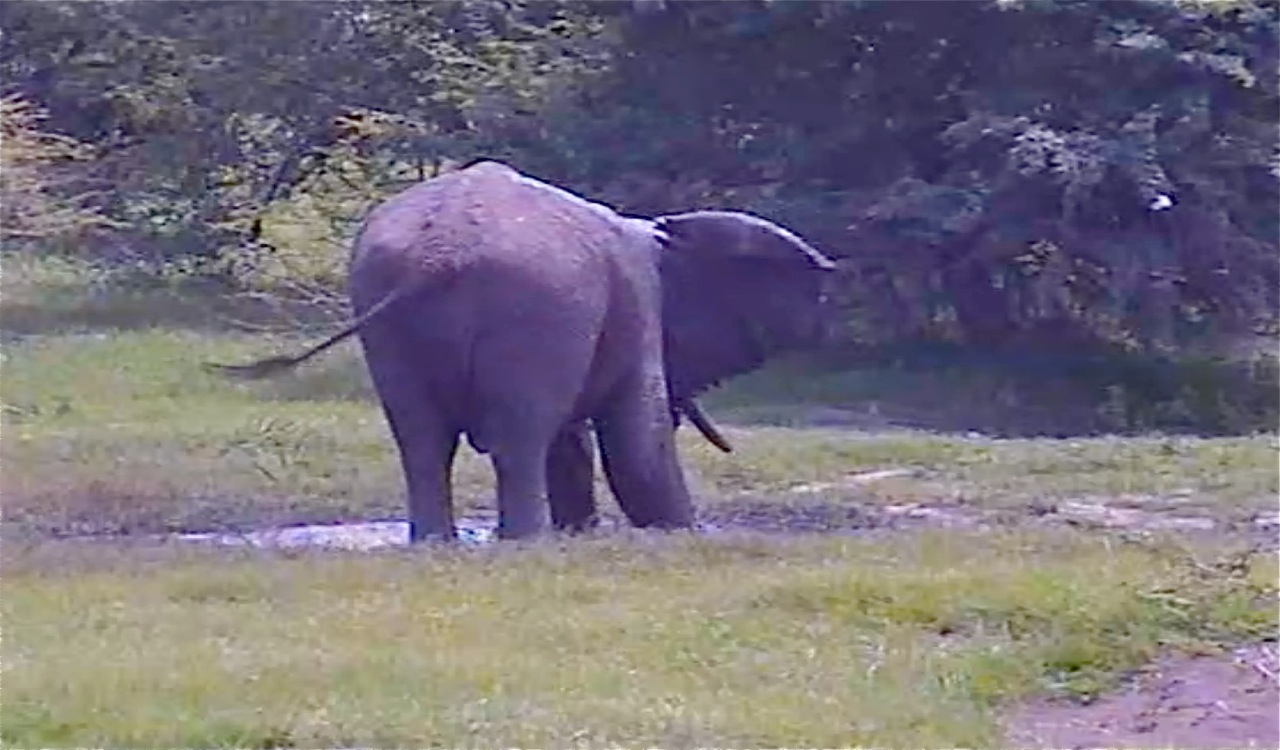 Before the president called this morning I was looking at the Tembe elephant park webcam and this is the scene that greeted me. We always kind of chuckle when we see the South end of an animal going North because it always amazed us how often this is the view we got of many animals when we would go to a game park.