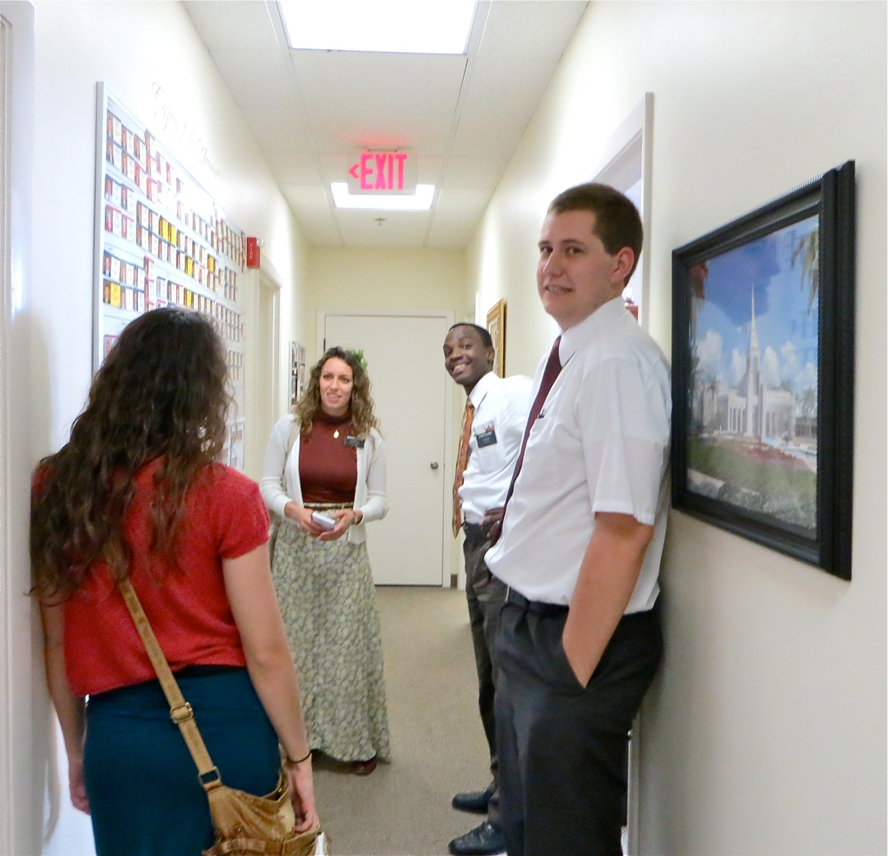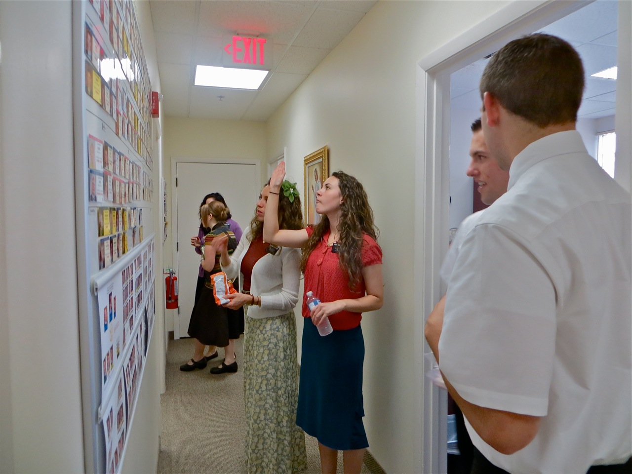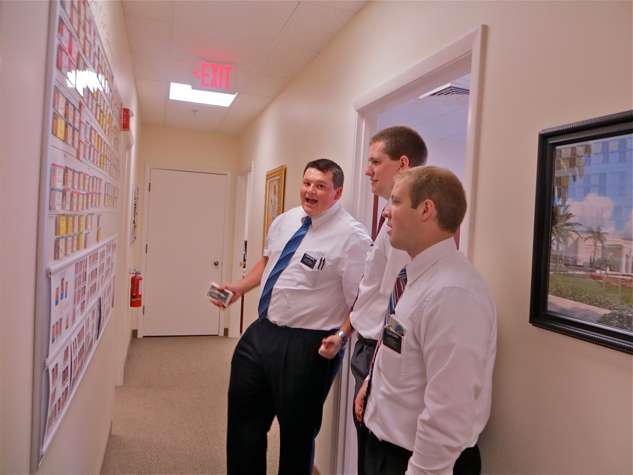 The first ones in were elders Rasmussen, Claude, Bowen and Duncan. Elders Bowen and Duncan left Lake Okeechobee at 4:30 – I mentioned that was kind of like when they had to leave the MTC to come to Fort Lauderdale. Elder Hanna and Sister Andrus are not companions…elder Tesch and sister Dunford are just around the corner of the supply room. Everyone has to spend time in front of the big board that shows when missionaries go home. They dread being up on the top or what is affectionately known as death row. They also look to see where all their friends are on the board.