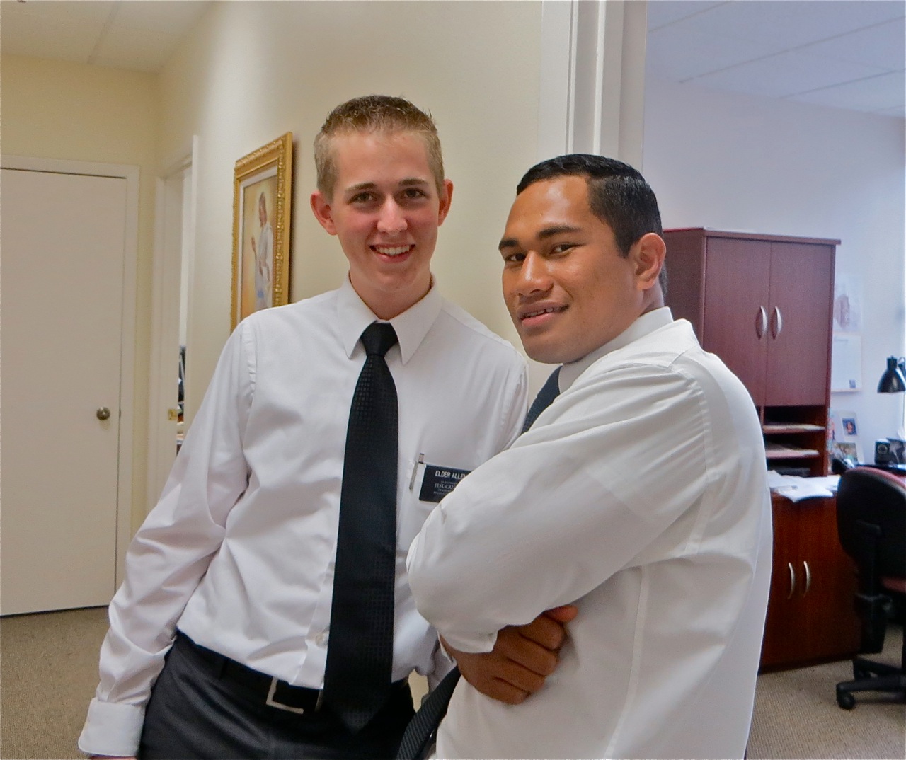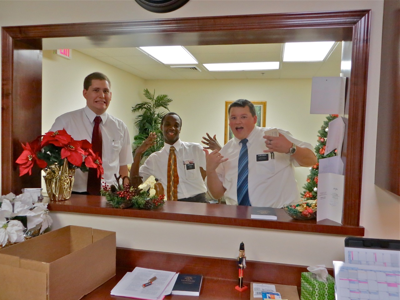I could not pass up taking a picture of all the lovely and dedicated sisters who were in the office at one time. Sisters Judkins, Dunford, Carnes, Andrus, Quiocho and Brown were happy to pose. I do not usually post all the ‘crazy’ pictures but the sisters thought it was a great idea. You are welcome to vote for who you think did the best job of looking ‘crazy’? Earlier elders Rasmussen, Claude and Duncan could not resist acting up…I did not even have to suggest it to them.