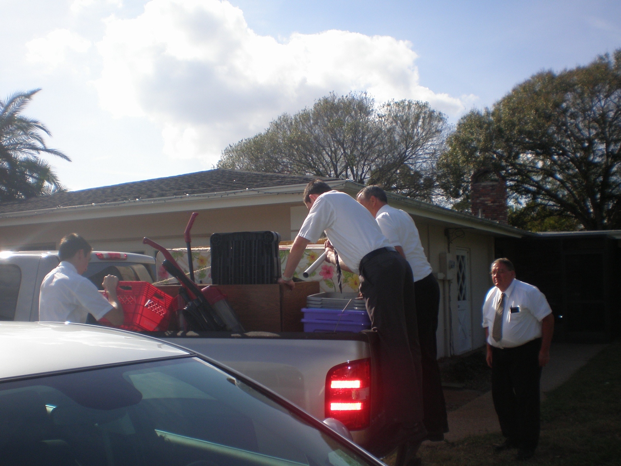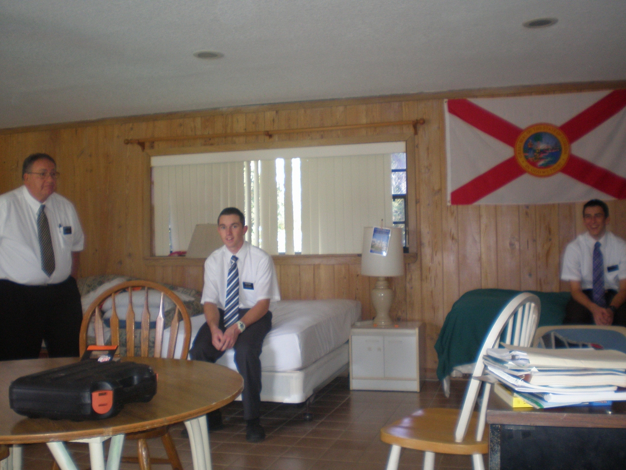 The missionaries serving up in Vero Beach, Elders Dean and Owens got to move into a new house that is actually owned by the Church. Elders Collins, Sommerfeldt and Evans went up to help them move. This trio spend much of their time either moving missionaries, changing out furniture, or inspecting the missionary apartments. This means a lot of traveling and often hard work in the heat and humidity of Southern Florida. They are often accompanied by their wives who pitch right in and help in many ways.