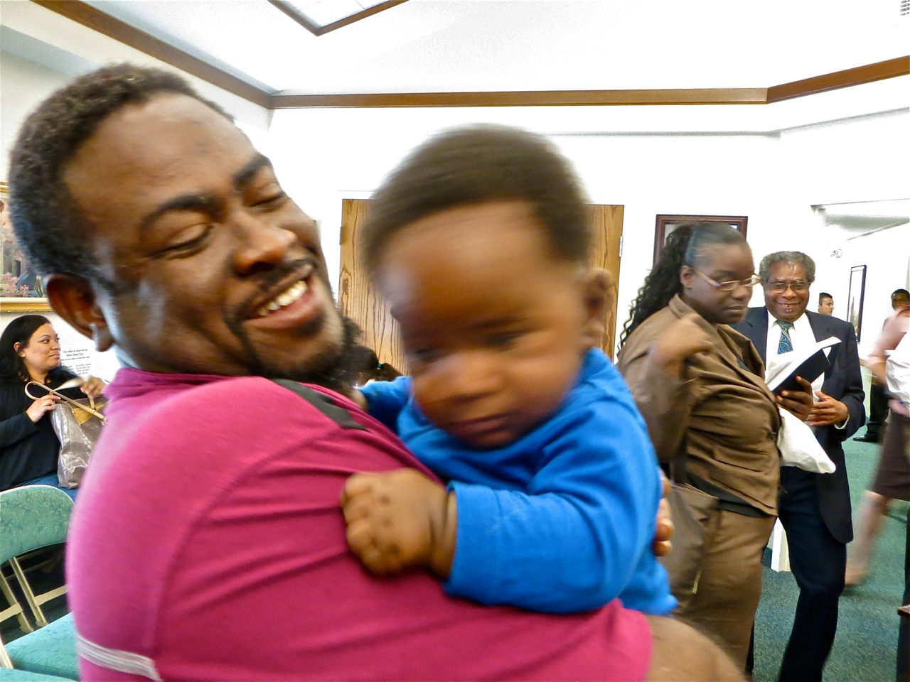 The other family we helped bring to church was one that we had picked up before. Jean is really excited about the gospel and attended last week. He also attended the first Bible study class on last Wednesday night and loved it. I caught him here with his 3 month old nephew. Brother Beille – the one in the back with the big smile – is the assistant ward mission leader and is very committed to missionary work. He was baptized 2 years ago and often seems to date his life from his baptism date.