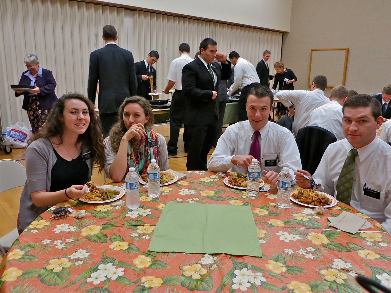 Sister Quiocho says she does not pose when she sees me taking pictures…I will let the picture speak for itself. Sister Brown is in the background as is sister Smith. The sisters get to be first in line as Mary starts to help with the food. The elders soon joined in and the heaps of food on their plates show that they were ready to eat.