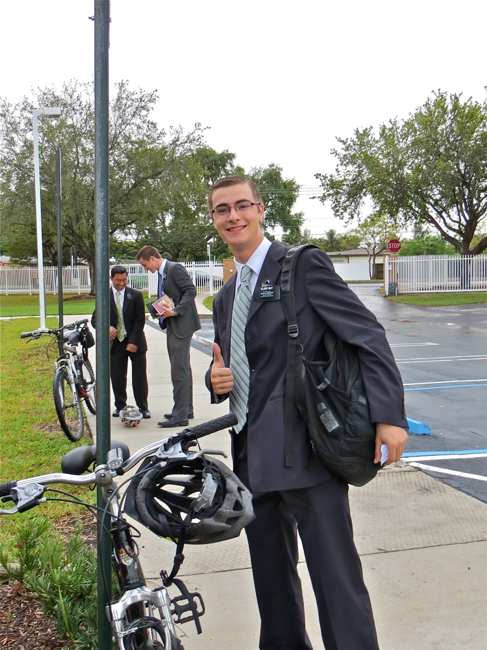 Sisters Carnes and Judkins serve the Hialeah East area. The only missionaries who arrived on bikes were elders Bay and Diaz who serve in Miami Lakes. At least they do not have to worry about going over on their miles like some areas do. They are allowed to bike as many miles as they want each month.