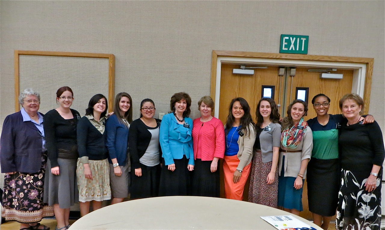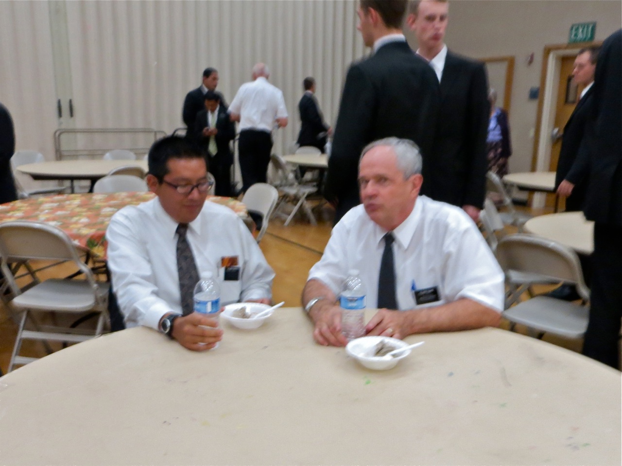 After greeting the McCormicks they did get have some lunch. Elder Rockwood was coming back for seconds I believe while elder Diaz got his first plate. The sisters did not all sit together as they sometimes do at conferences. Sisters Andrus and Dunford, who we saw yesterday at the office, were joined by elders Tesch and Hanna.