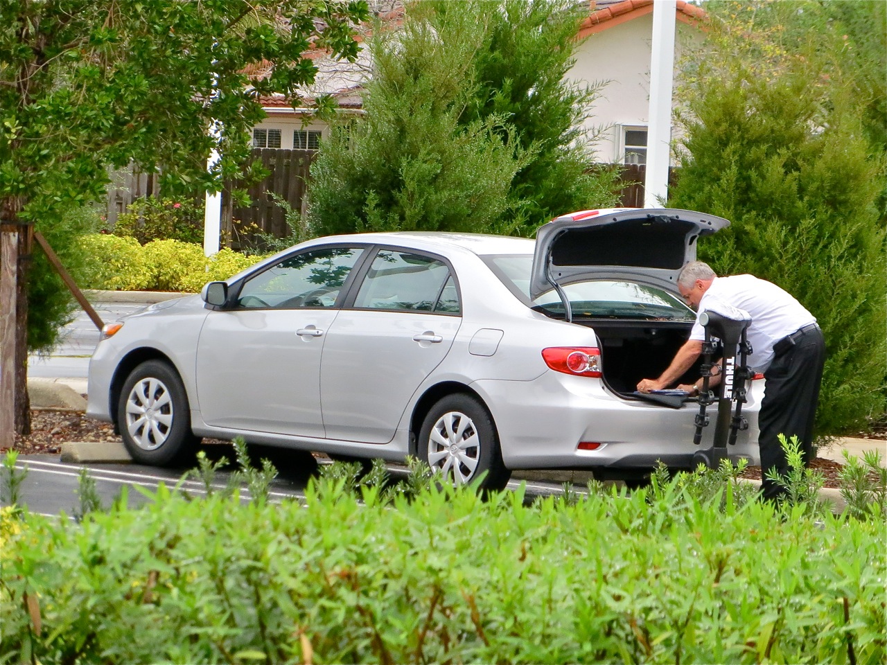 Speaking of miles, elder Bare went to both conferences to work on cars and bike racks. With elder Sommerfeldt going home, elder Bare is as busy as a one arm paperhanger keeping up with the vehicles and bikes. Elder Beer, Williams and others arrive from the Homestead zone. Elder Benitez gets some things out of his trunk before the meeting.