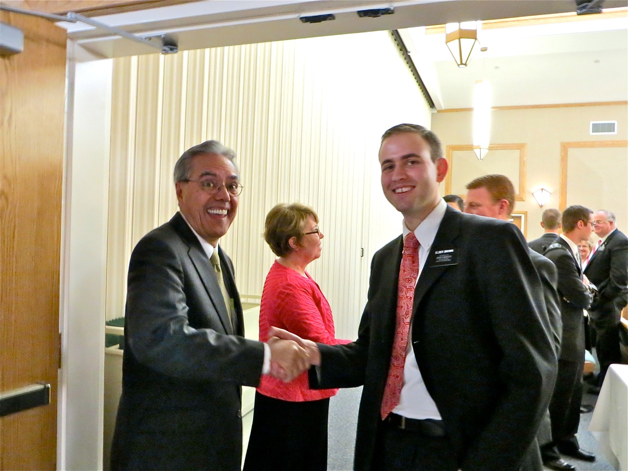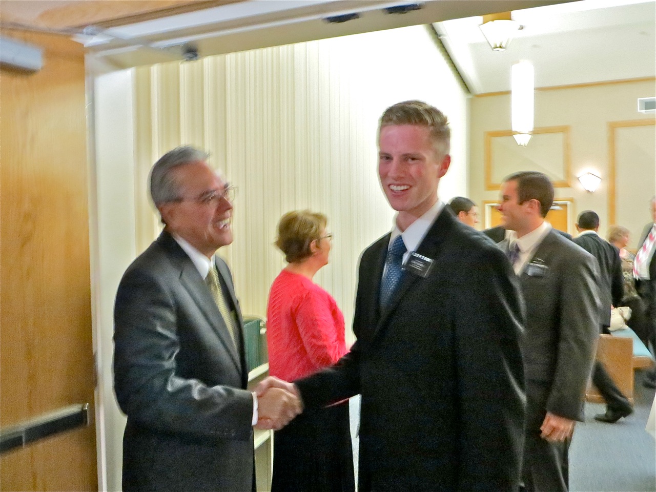 Since the food line was moving along, I went to get in line to meet elder Haleck. When I got there I started taking pictures of some of the missionaries as they shook hands with him. Elder Haleck’s wife greeted them also. There are too many pictures to name them all but I am pretty sure parents and friends will recognize their missionary.