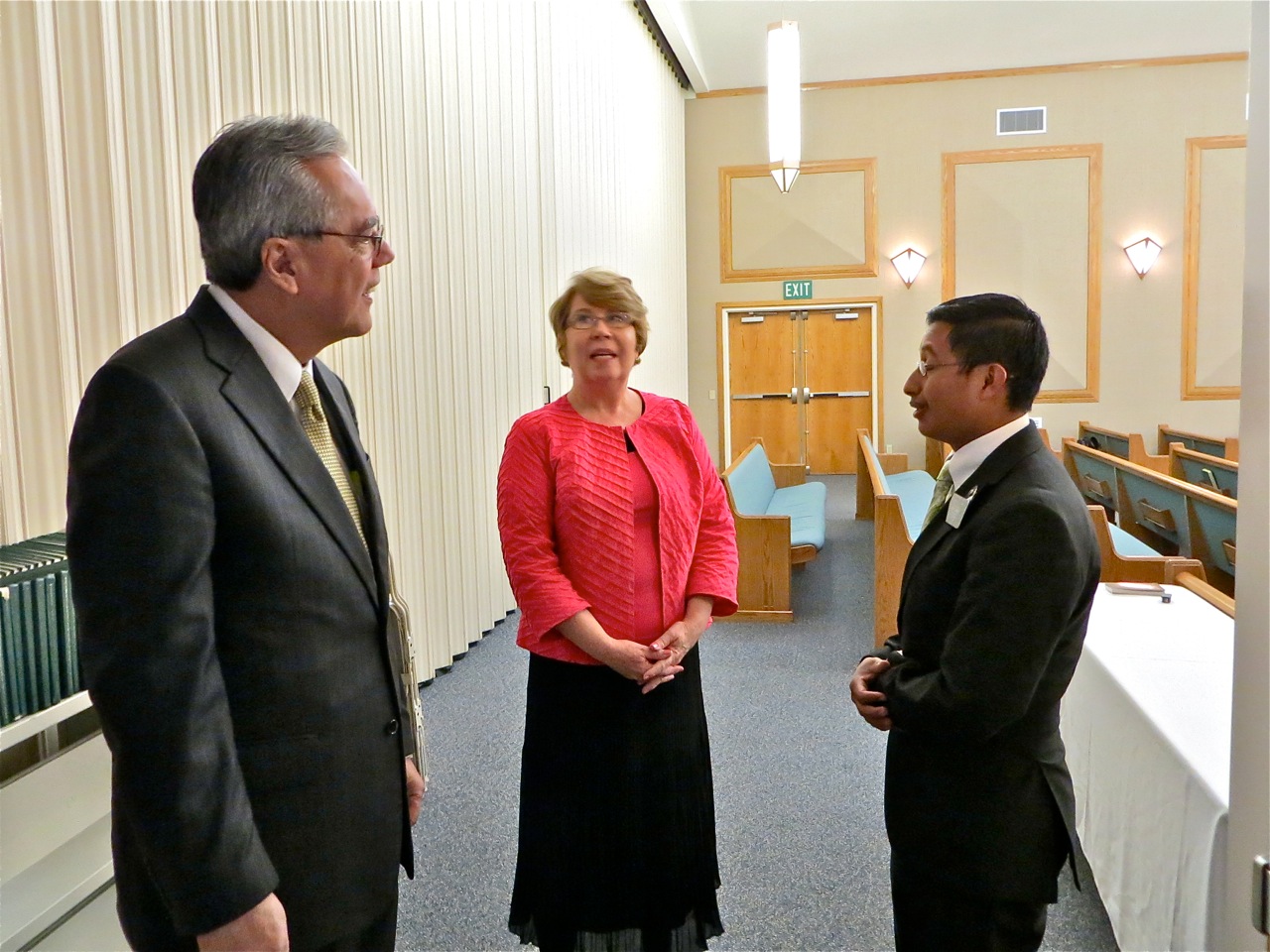 Elders Curtis and Bare hold a conversation – maybe about cars or elder Bare was getting a Spanish lesson. The Halecks and Andersons had an official picture taken by elder Shipley – I took mine from the side. I also got one of sisters Anderson and Haleck talking…it came out a little blurry but as bishop Brown often says – it is what it is!