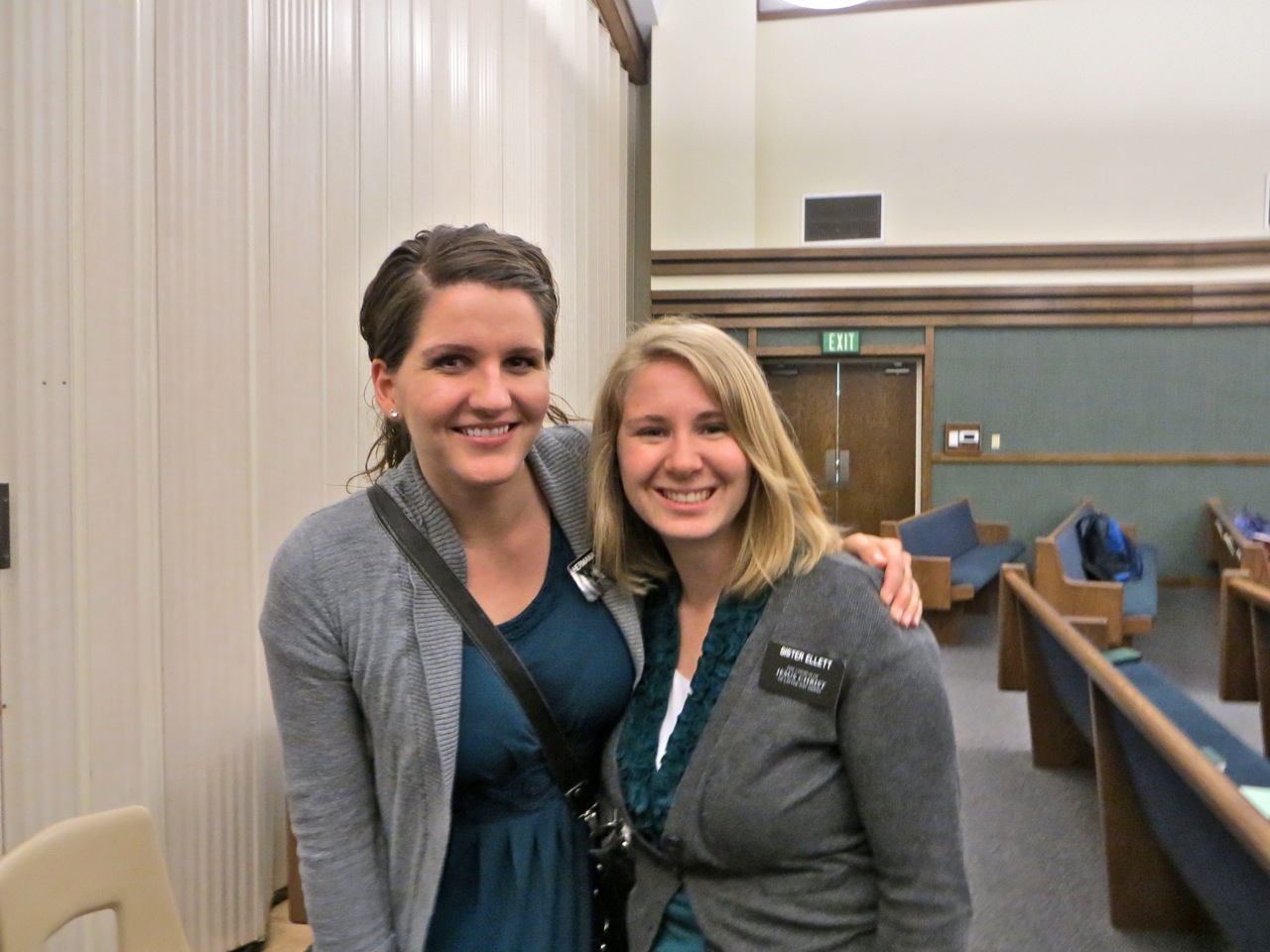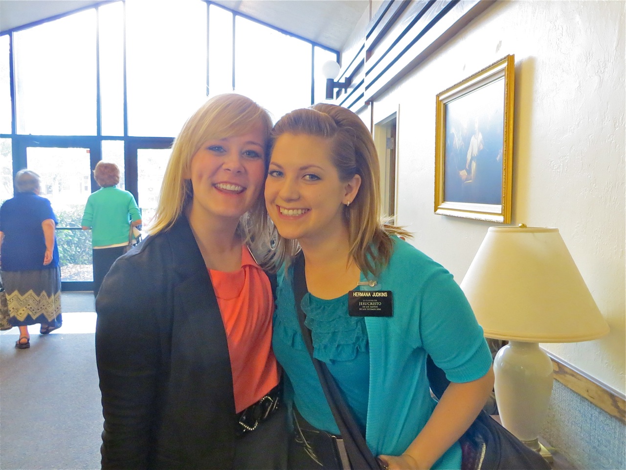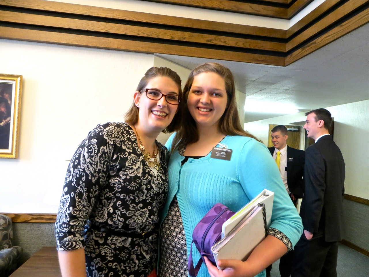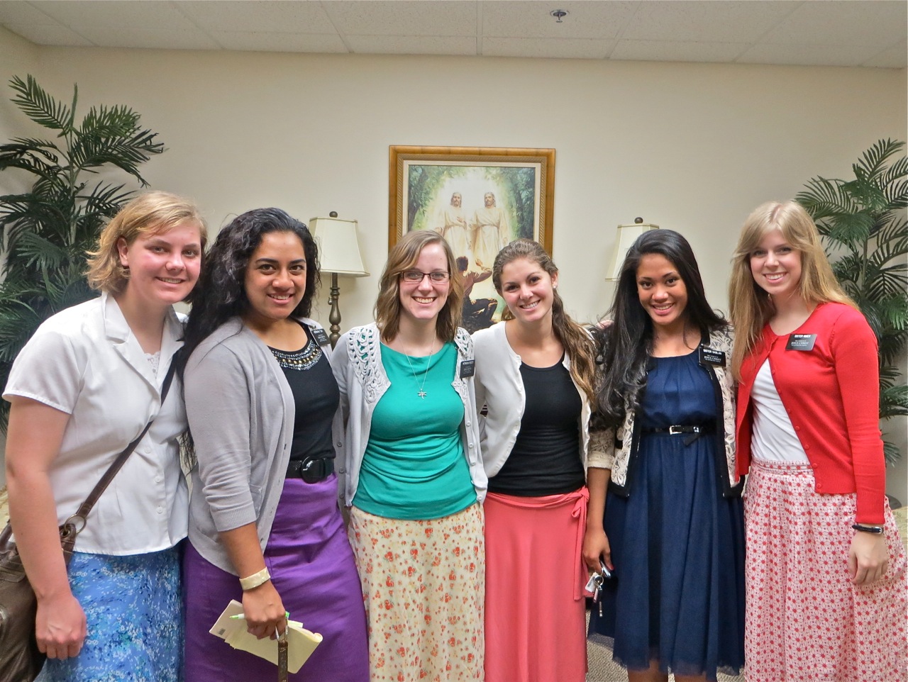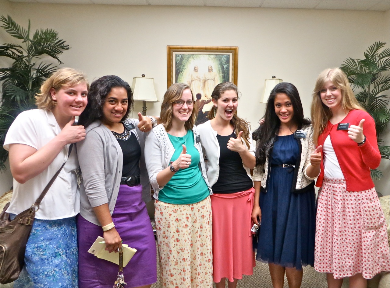 Sister Judkins is showing off something on their phone to sister Le Baron. I managed to catch 3 companionships of above average sisters together. Sisters McKay, Tuai, Clayton, Moody, Sablan and Nimer.