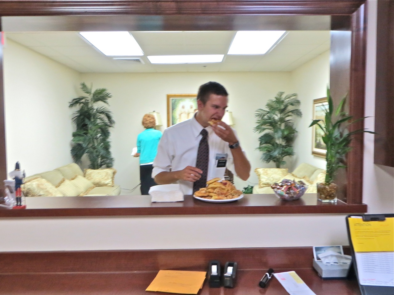 I can not believe that elder Bloom actually is the only missionary in this picture. Sister Bare is in the background busily refiling all the goodies. Sister Price will train sister Orton in one of the Hollywood areas.