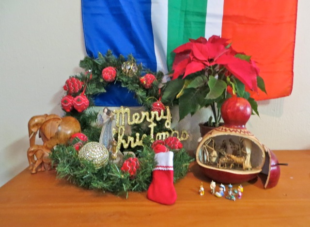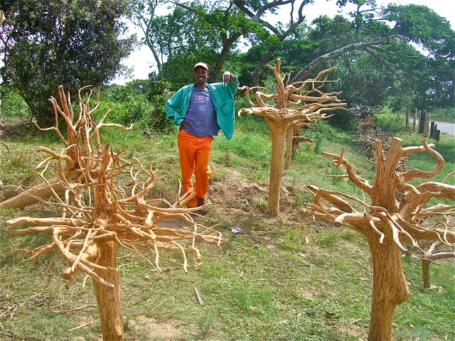 Christmas 2011 was also in Florida where I bought a different kind of pine which Mary was not thrilled with because the branches were too flimsy. I am still looking for one from 2010 when we were home. The tiny picture – I can not find the original so borrowed this one from our blog – is our 2009 tree in Richards Bay South Africa. It is actually a tree root that has been sand blasted. I wish we could have brought it home. This was the man where we bought our small tree. I really wanted to buy one of the big ones and send it home to make a table but could not figure how to do it without it costing a fortune.