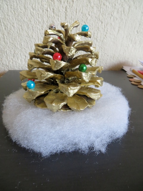 We were visiting a member’s home and they had this very African Christmas tree made from the branches of a thorn bush. They paint them white and use the two inch thorns to hang their ornaments. While we were there we also saw that they used painted pine cones to make small Christmas trees. We like this idea so much that we gathered up a bunch of cones and painted them silver, white, gold or green and are going to use them as an activity for FHE and Seminary this week. The white base is Mary’s addition to the basic pine cone tree. I will post some of the creations later.