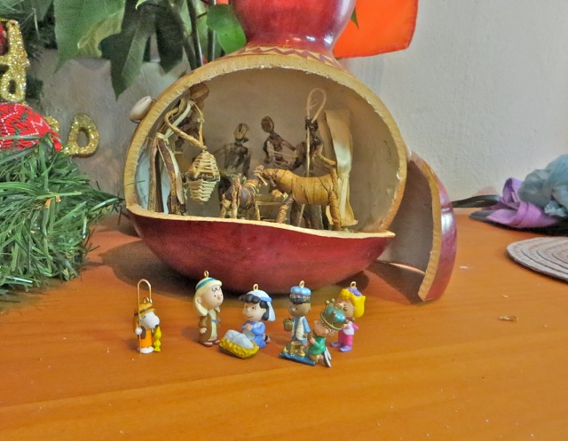 The two nativity sets on the left above come from our first Christmas in Indonesia. I bought the small Charlie Brown set in Provo and brought them to Jakarta to surprise Mary. I did not know what size tree we would have so I kept it small. The one behind it is from Africa and we bought it soon after we got here this time.