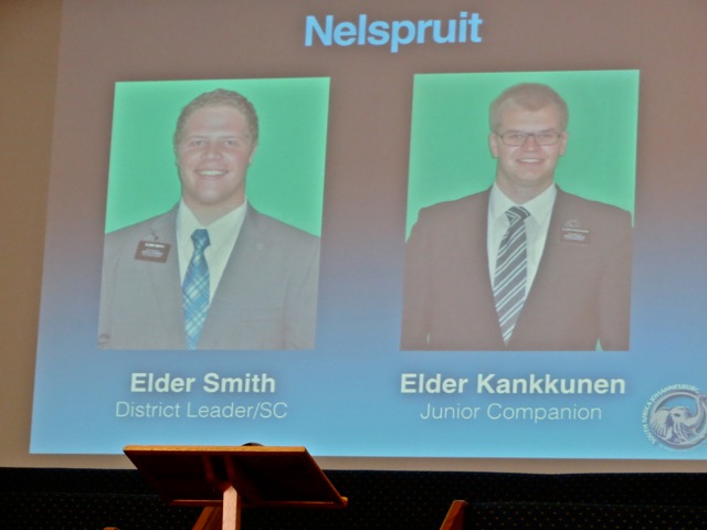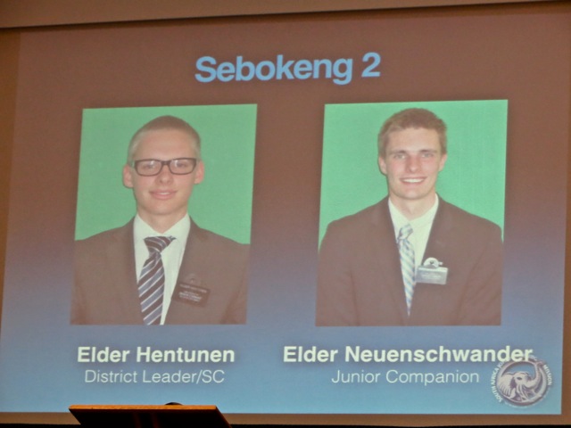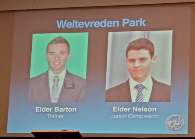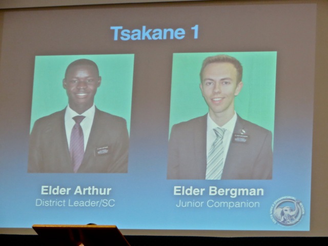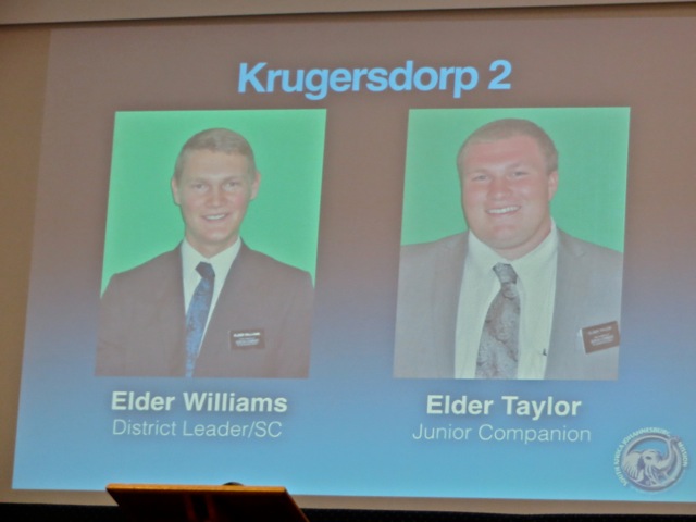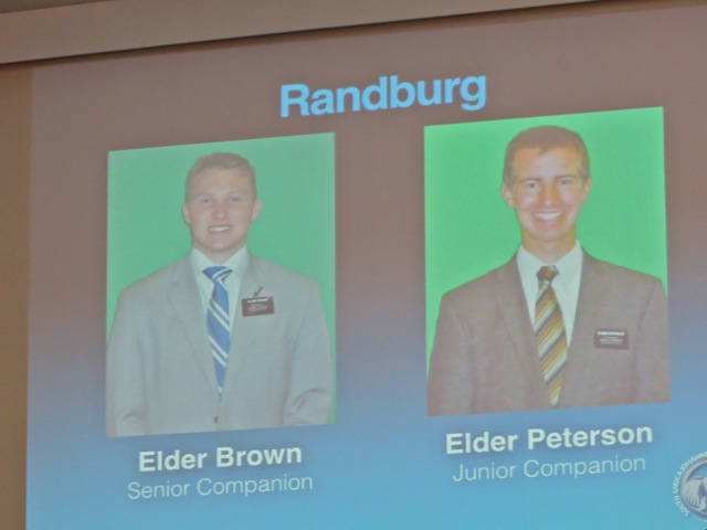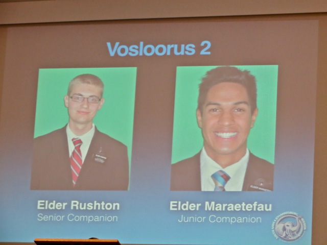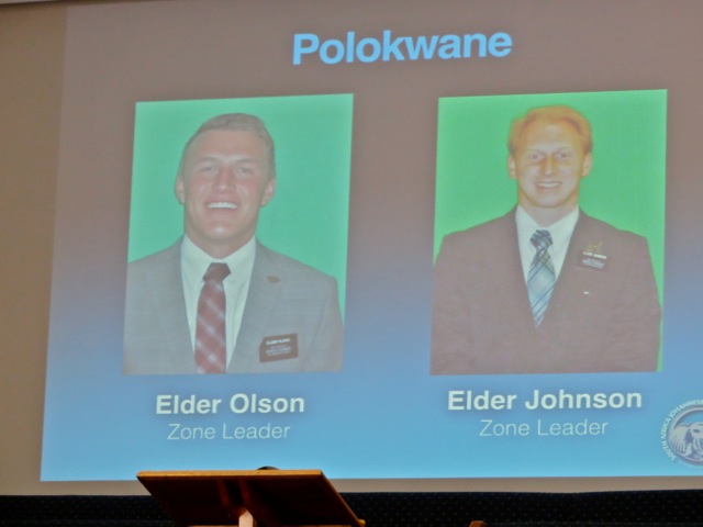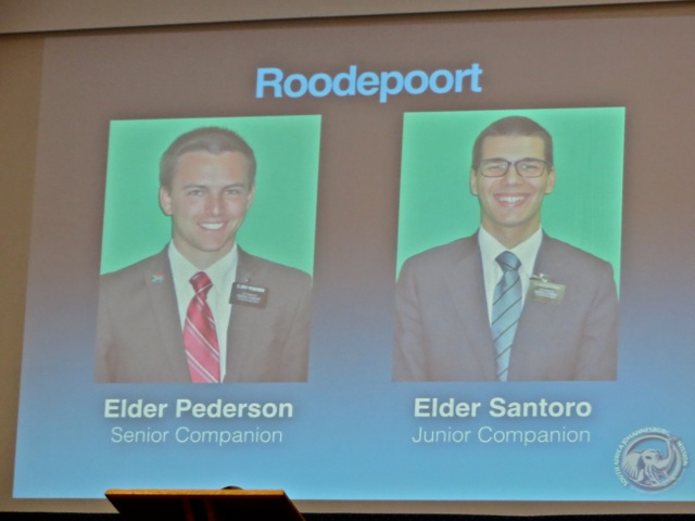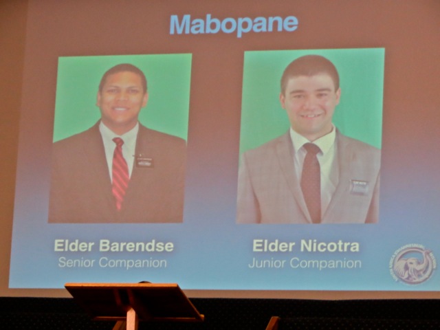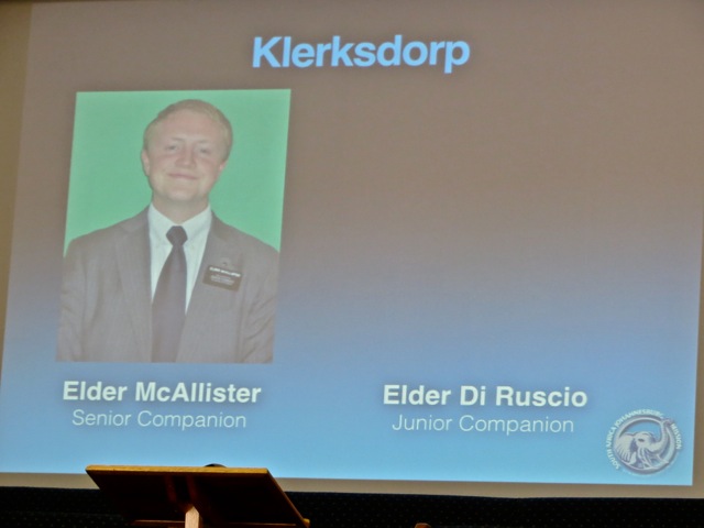 Elder McAllister will serve with elder Di Ruscio in Klerksdorp…elder Di Ruscio is from Pisa and must have leaned out of the picture. The whitewashed Orange Farm area has two new missionaries. We are excited to meet them.