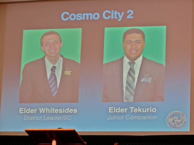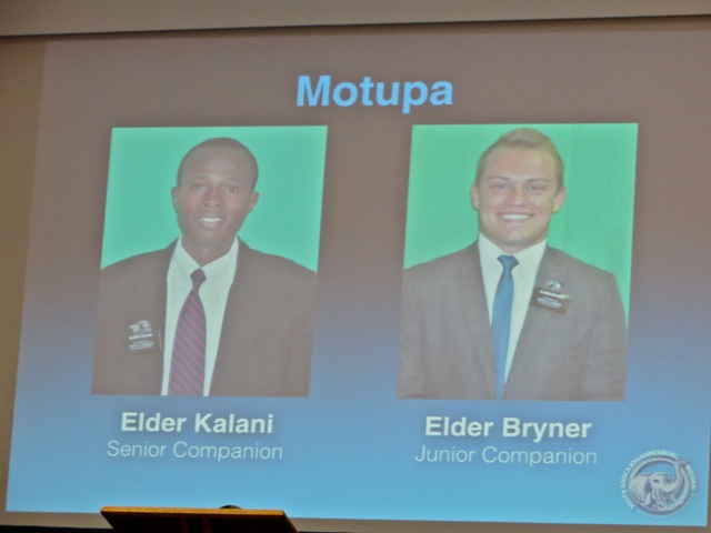 We were sorry to see elder Whitesides leave the Vaal zone but we are glad to see he is serving with the ever smiling elder Tekuriio