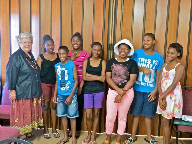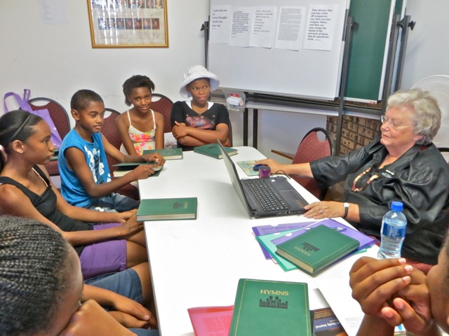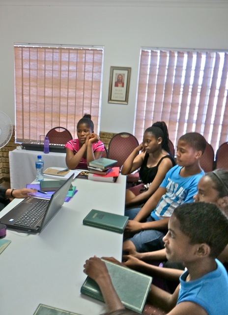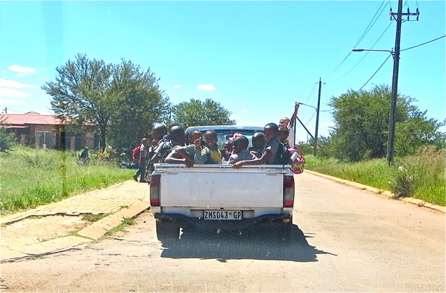 On Thursday while driving through part of the township we found ourselves behind this truck load of students on their way home. I kiddingly posted it on Facebook as a South African Township school bus. Mary had a good size seminary class where the young women out numbered the young men 5-2. The taller young man is Papa who was only out of the hospital for two days! She has some dedicated students.