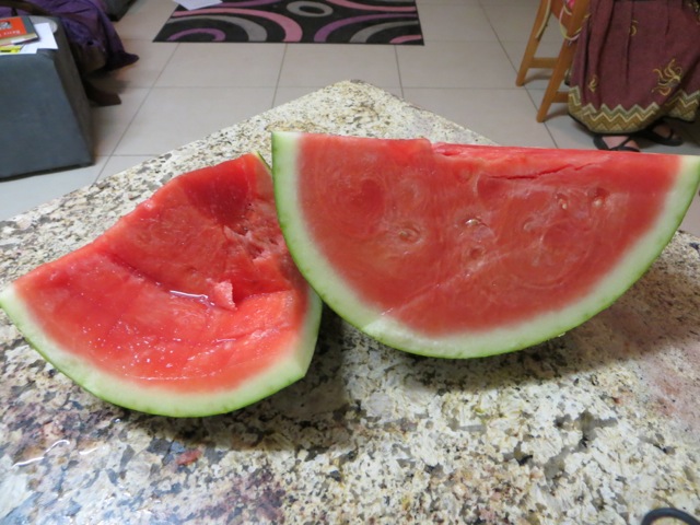 Mary bought half a watermelon and when I started eating it I noticed that it was seedless! It was the first seedless watermelon we have had since we were here. I can not remember about our first mission. Just a couple of days earlier I was commenting on a sister in the branch that I was surprised that they did not have seedless watermelons and lo and behold we were eating one. Besides being seedless it was sweet and delicious.